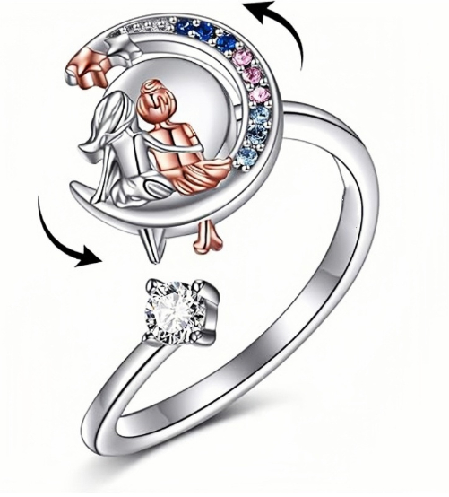 Creative Moon And Star Rotating Ring For GirlsPerfect Birthday Gift For Best Friends And Girl Buddies