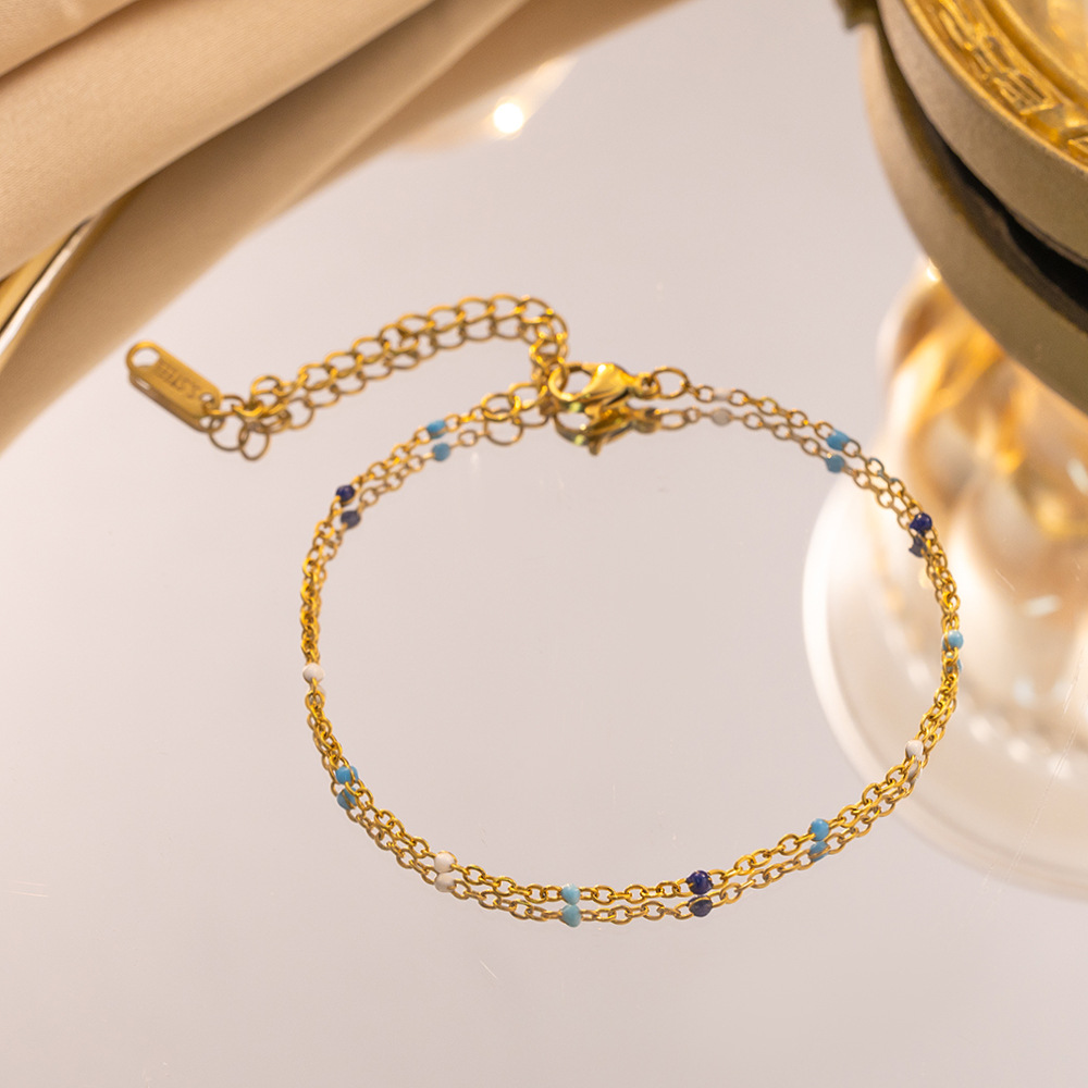 Dopamine-drip Glaze Colorful Gradient Bead Titanium Steel Necklace